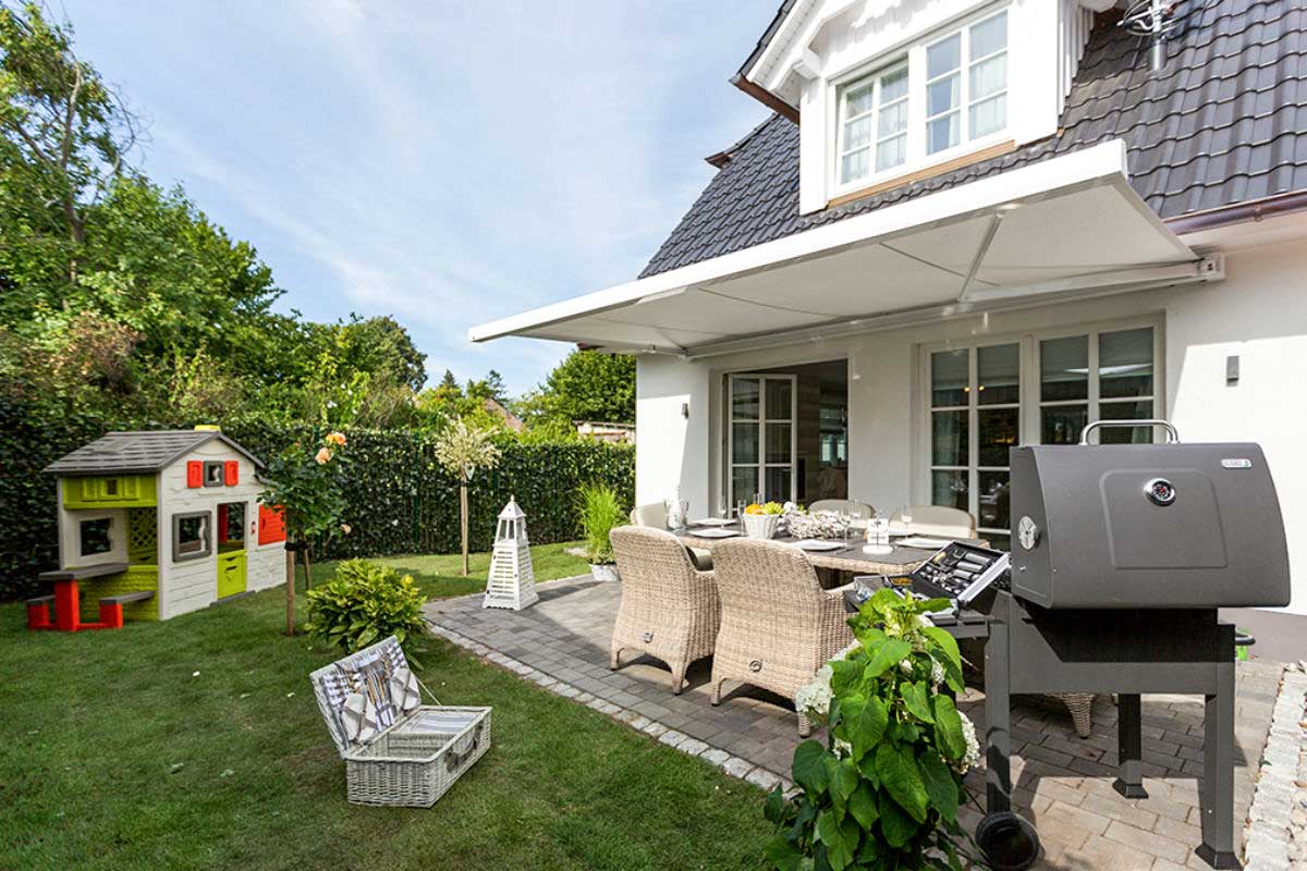 • eingezäunter Garten mit elektrischer Markise