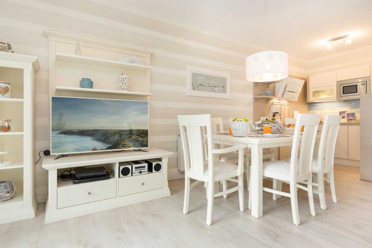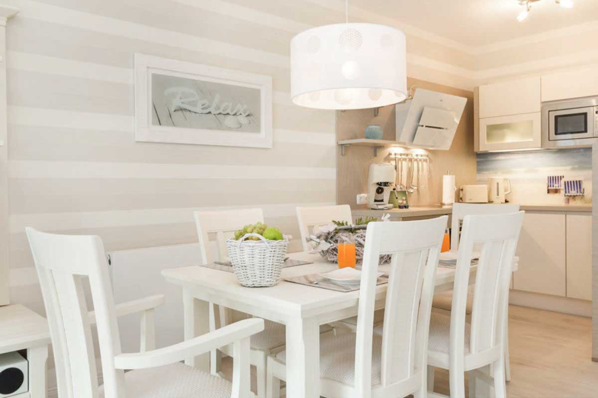 Das Haus Zingster Perle 02 empfängt Sie mit einem durchdachten Wohnkonzept, das moderne Ausstattung mit wohnlicher Gemütlichkeit verbindet. Im großzügigen Erdgeschoss bildet der offene Wohn- und Essbereich das Herzstück des Hauses: lichtdurchflutet, geschmackvoll möbliert und mit einem gemütlichen Kamin für kühlere Abende. Die angrenzende Küche lässt keine kulinarischen Wünsche offen – perfekt für gemeinsame Kochabende mit Freunden oder Familie. Ein modernes Bad mit bodengleicher Dusche sowie ein Hauswirtschaftsraum ergänzen das Raumangebot.