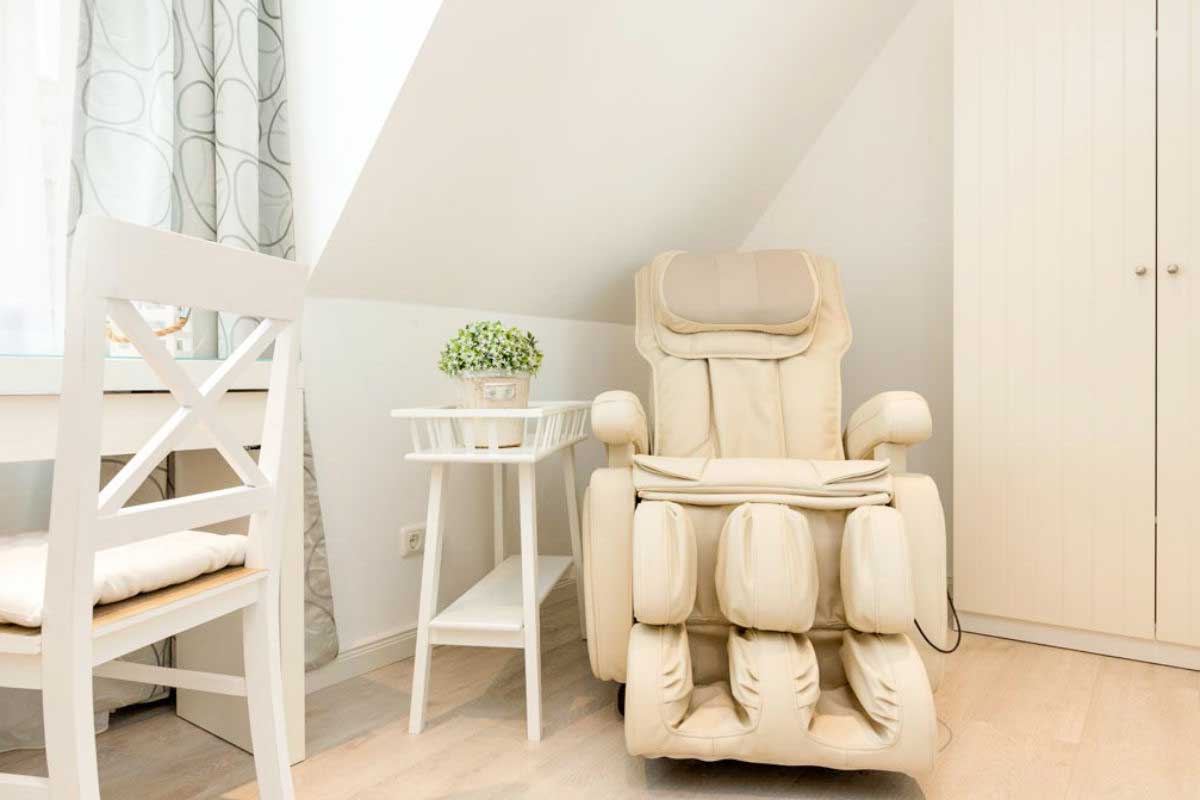 Lehnen Sie sich zurück, schließen Sie die Augen und lassen Sie sich durchkneten. Der Sessel bietet verschiedene Massageprogramme – von sanfter Entspannung bis hin zur gezielten Tiefengewebsmassage.