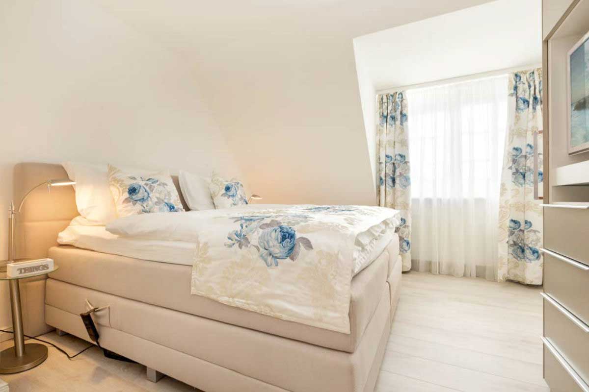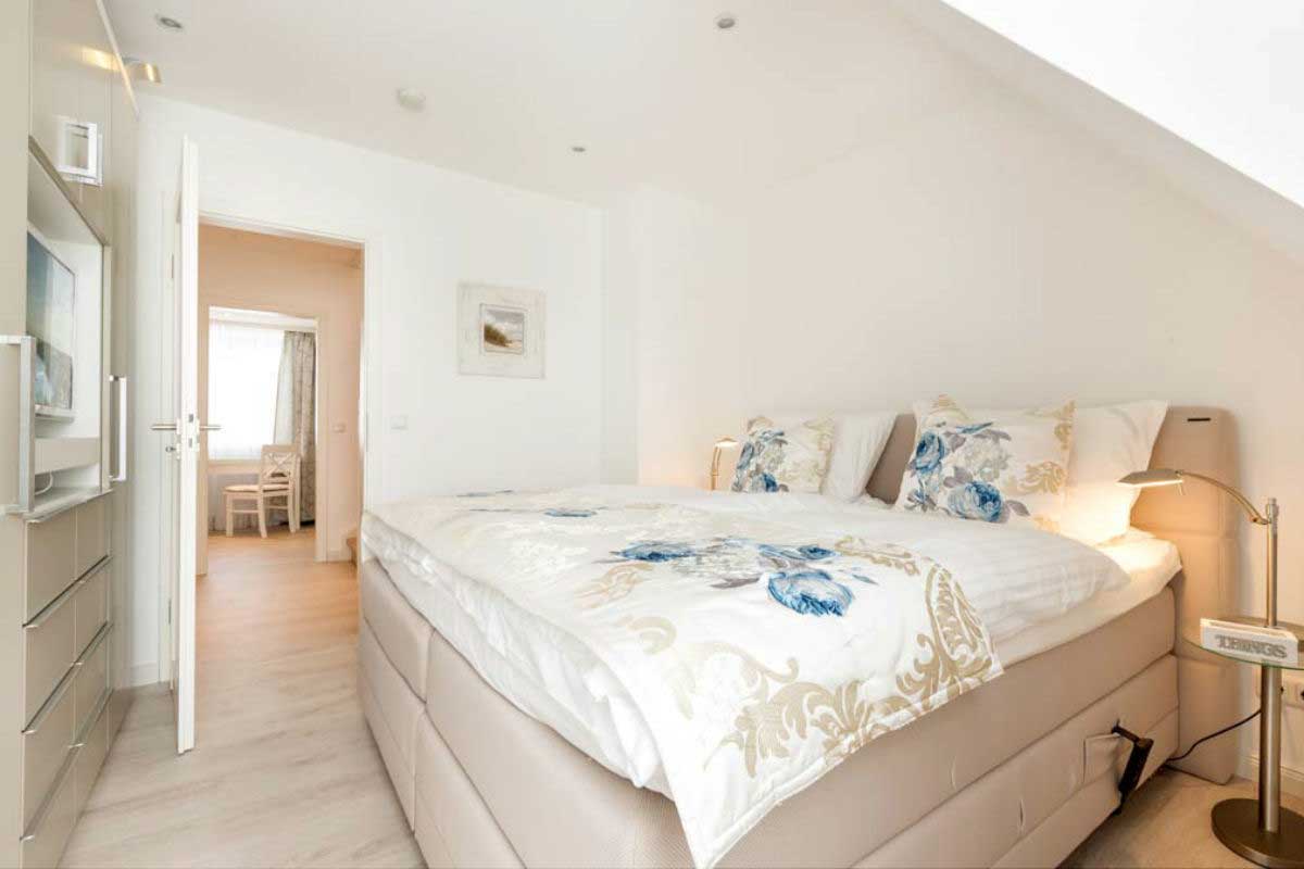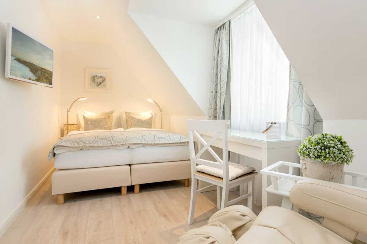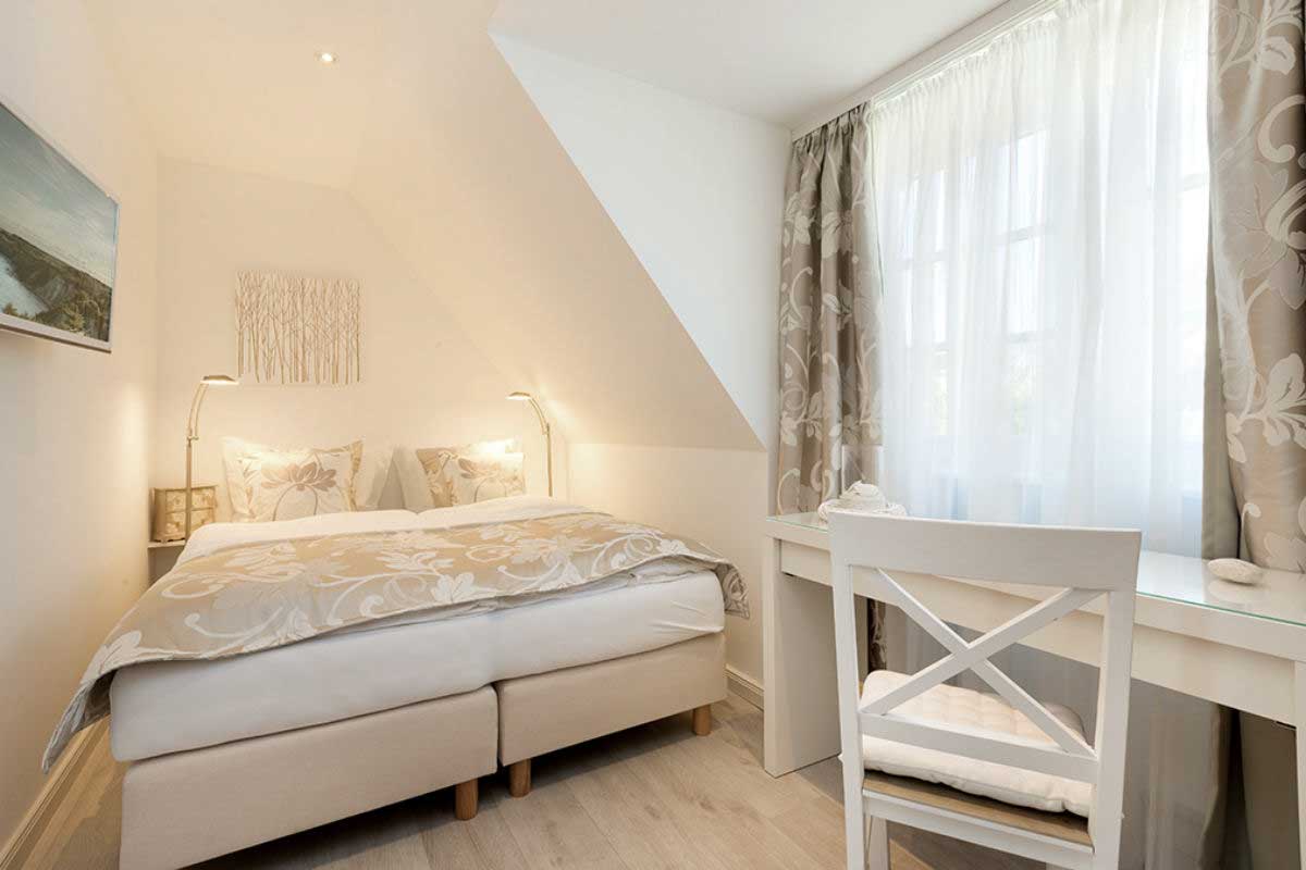 Ein weiteres, charmantes Schlafzimmer mit zwei Einzelbetten und TV befindet sich im ausgebauten Dachgeschoss – ideal für Kinder oder Gäste.