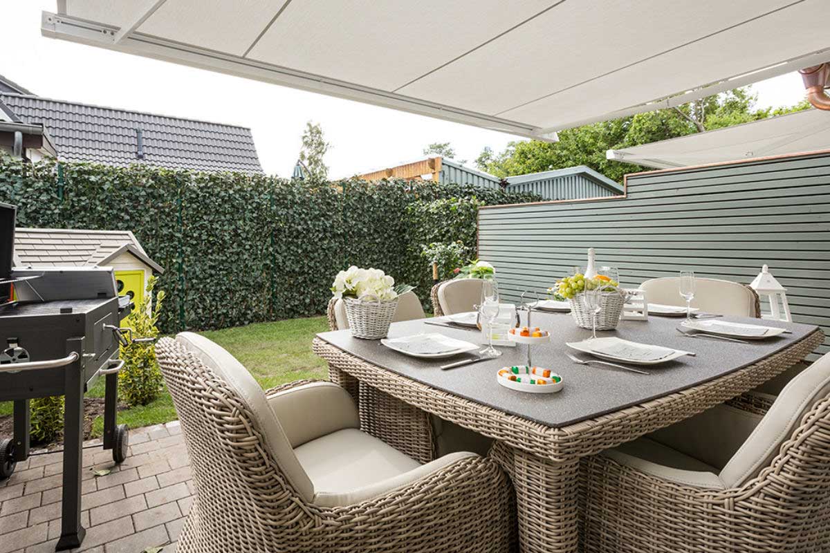 Auf der sonnigen Terrasse genießen Sie entspannte Stunden im Freien. Ob Grillabend oder Sonnenbad: Gartenmöbel, Markise und ein liebevoll gestalteter Garten bieten perfekte Voraussetzungen. Für die kleinen Gäste steht ein Spielhaus bereit – und auch Kinderbett und Hochstuhl sind vorhanden.
