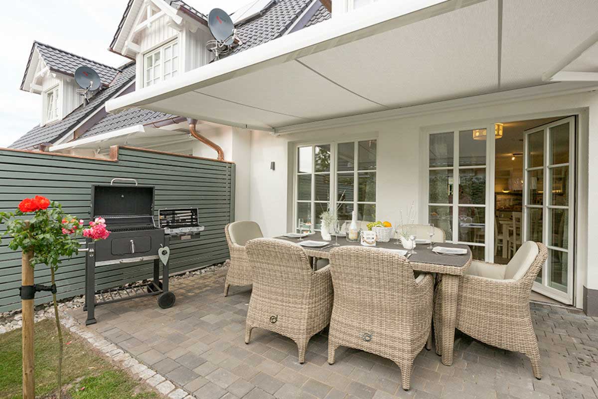 - eingezäunter Garten mit elektrischer Markise